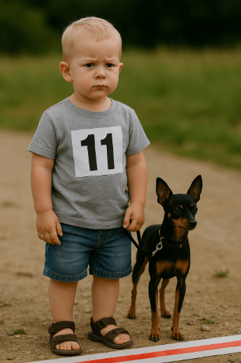 Poslední místo: Kamil Broňovský (3 roky) na pražském krysaříkovi Řekovi – pes vážil 1,7 kg a odmítal pohyb, Kamil většinu trasy spíš stál.