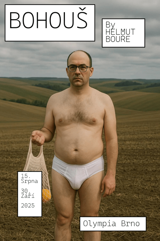 Renomovaný tvůrce Helmut Bouře přiváží svou nejnovější výstavu „Bohouš“ – ale pozor, nejde o metaforu. V hlavní roli zde neuvidíte autora, nýbrž jeho bratra Bohuslava, který se pro účely vernisáže stává živou sochou.