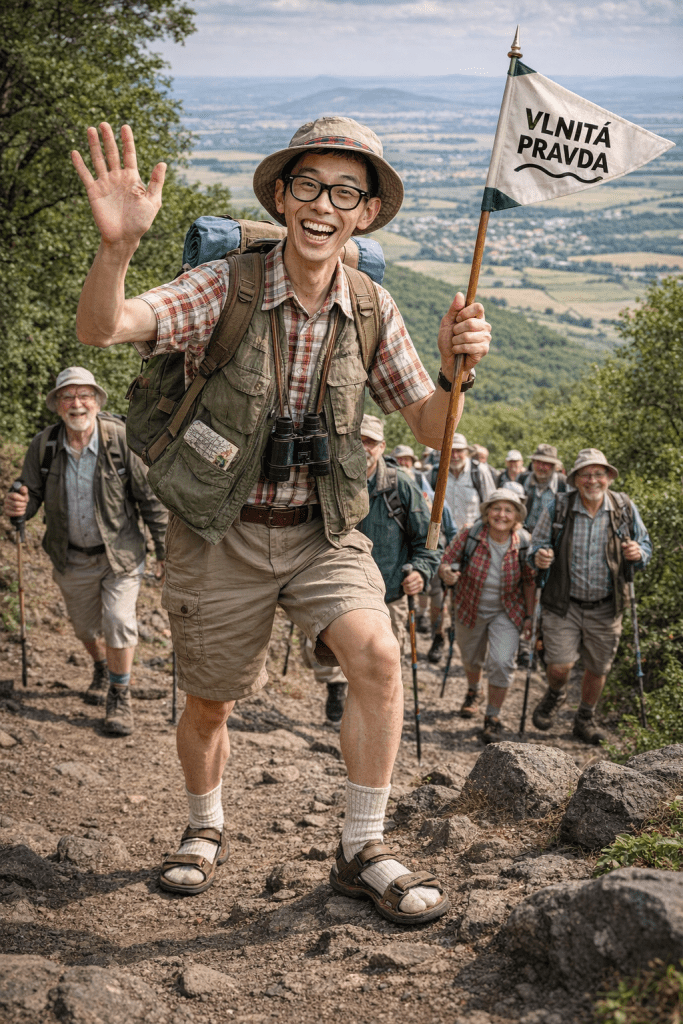 Je to něco mezi poutí, školním výletem a kolektivní terapií. Sejde se skupina lidí, kteří se normálně znají jen z redakčních porad a poznámek pod čarou, a najednou musí jít spolu několik hodin lesem. Bez Wi-Fi. Bez tiskových zpráv. Jen s batohy a svačinami, které často prozrazují víc o charakteru člověka než jeho články. Já trasu vybírám tak, aby nebyla příliš náročná, ale ani úplně pohodlná. Musí tam být moment, kdy si někdo řekne: „Proč jsem sem jel?“ A pak moment, kdy si řekne: „Ještě že jsem jel.“ Na konci se obvykle pije čaj z termosky a probírají se nápady, které by v kanceláři nikdy nevznikly.